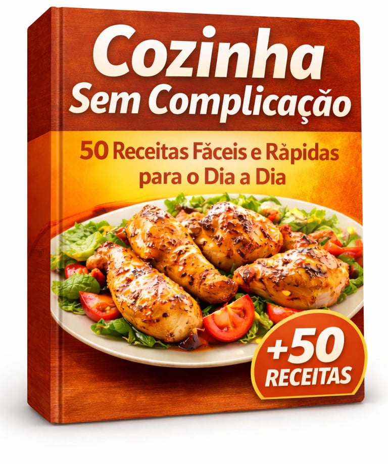 Você recebe o ebook principal "Cozinha Sem Complicação" com 50 receitas testadas, mais 4 ebooks bônus exclusivos: Air Fryer Sem Erro, Receitas em 10 Minutos, Segredos da Cozinha que Ninguém Te Conta, e Sobremesas Rápidas e Lucrativas. Tudo em formato digital para acesso imediato.